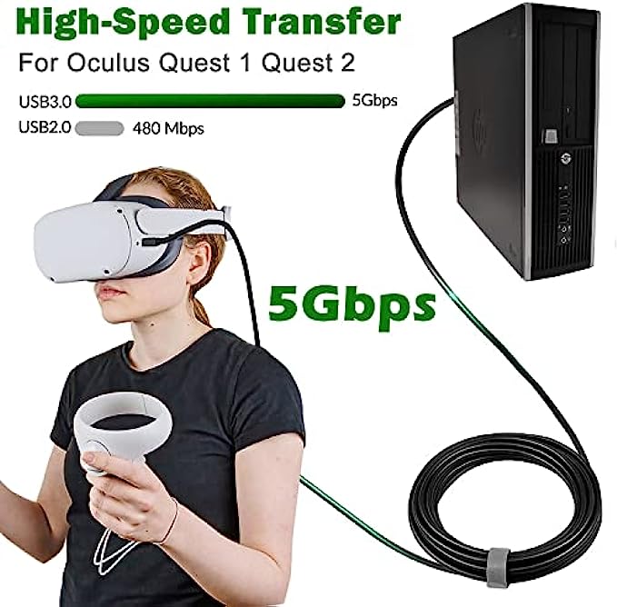 GOBEST Link Cable 10FT Compatible with Meta/Oculus Quest 2/1 and PC, High-Speed Data Transfer Fast Charging USB 3.0 to USB C Cable for VR Headset and Gaming PC