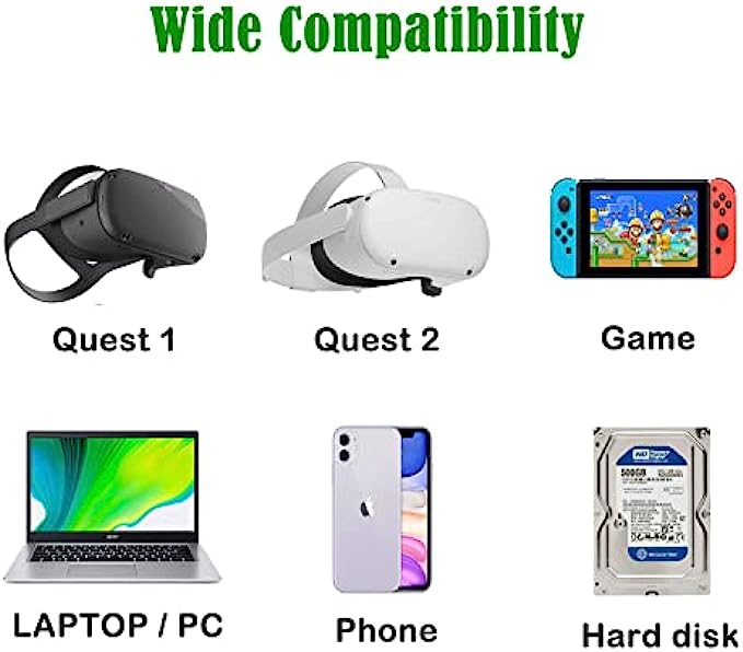 Compatible For Oculus Quest 1/2 - This Link Cable as a VR headset link cable perfectly connects the Quest / Quest 2 to the gaming PC, allows you to play Steam VR games and all Oculus Rift apps, providing the best gaming experience.