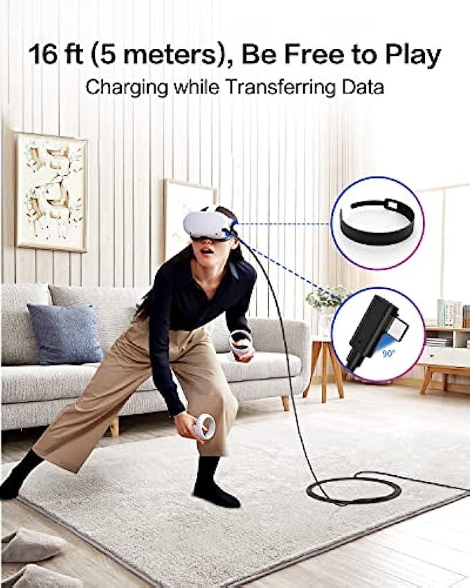 Flexible 16FT(5 Meters) Oculus Quest 2/1 Link Cable: The two ends of Oculus Quest 2/1 link cable are connected to the VR headset and the PC, which can be freely and flexibly moved without restrictions when playing games, watching movies, listening to music, etc