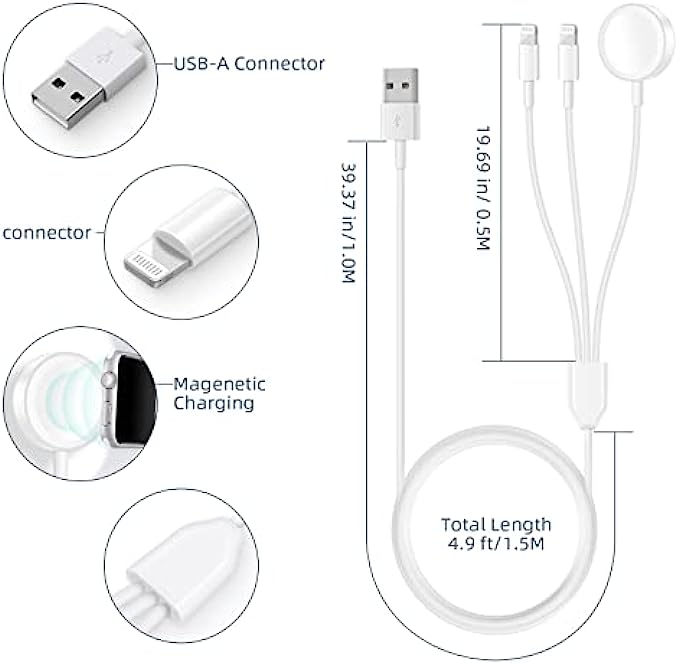 3 in 1 Portable Design:Updated 3 in 1 design,buy one get three chargers. 4.9ft/1.5m apple watch charger cable is convenient for office/home/travel/drive.